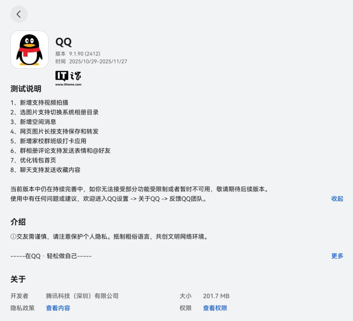IT之家附QQ鸿蒙版App本次测试说明如下: